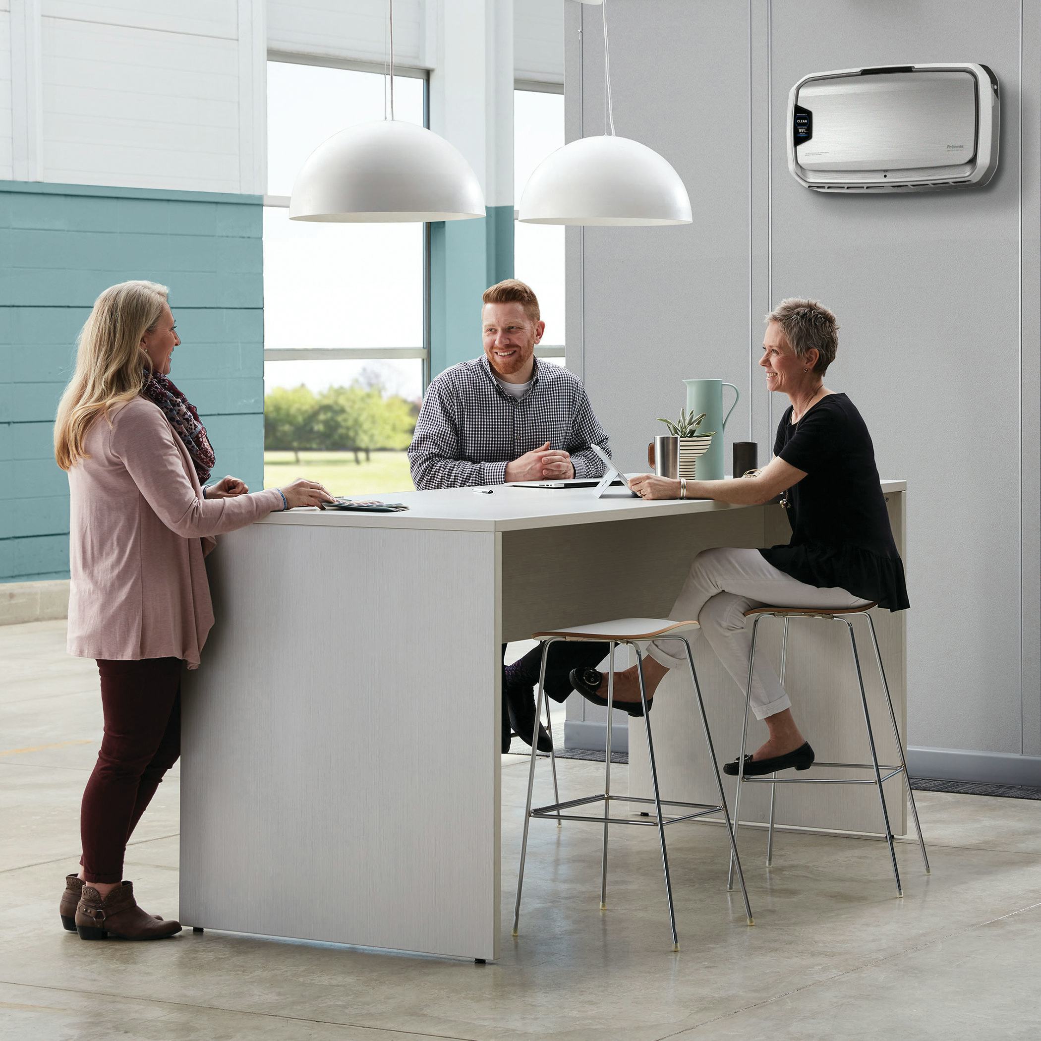 Het Aeramax® Professional 4-fasen filteringsproces van Fellowes gebruikt bewezen methoden om effectief de lucht te reinigen, waaronder HEPA-filtratie. Het apparaat is zelfs 99.99% effectief tegen het coronavirus, zo blijkt uit onafhankelijke tests. Het is de enige luchtreiniger die automatisch reageert op bezettingsgraad en luchtkwaliteitsniveaus en toont wanneer de lucht schoon is. Een schone en veilige werkplek voor jou en je collega’s.