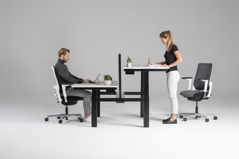 Een zit-stabureau is een ideale oplossing: met slechts één meubelstuk creëer je in een handomdraai een breed scala aan bewegingsmogelijkheden. De functionele bureaus helpen om afwisselend in een zittende en (half)staande positie te werken, waardoor de druk van de ruggenwervel en de nekspieren wordt weggehaald.