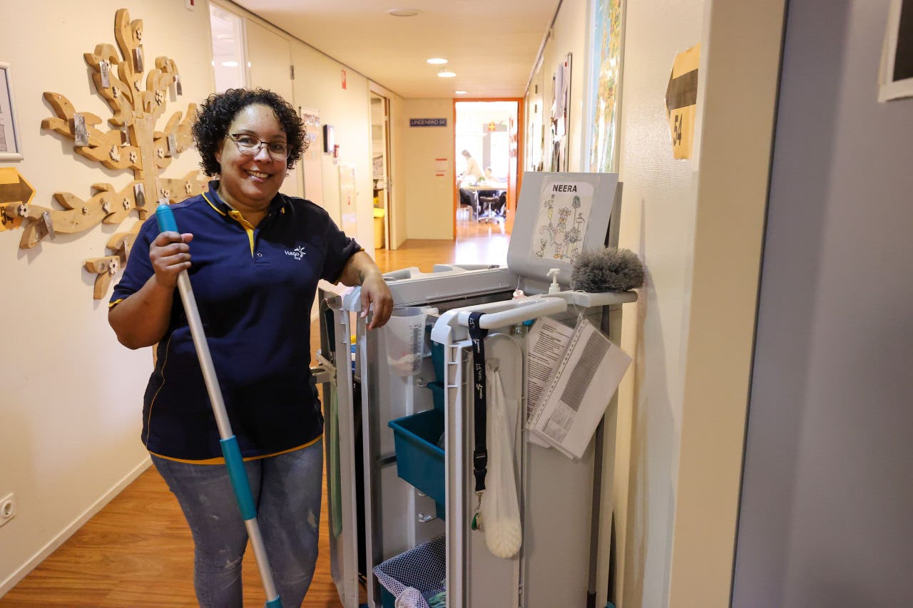 “Cliënten kunnen wat onvoorspelbaar zijn en ik vind het leuk om daar zo goed mogelijk mee om te gaan. De ene keer krijg je complimenten voor je schoonmaakwerk, de andere keer gooien ze bij wijze van spreken achter je de boel op zijn kop. Ik maak schoon bij twee grote woningen, waar per woning dertien cliënten wonen. Zij worden per woning begeleid door twee zorgmedewerkers. Met hen vorm ik echt een team.”
