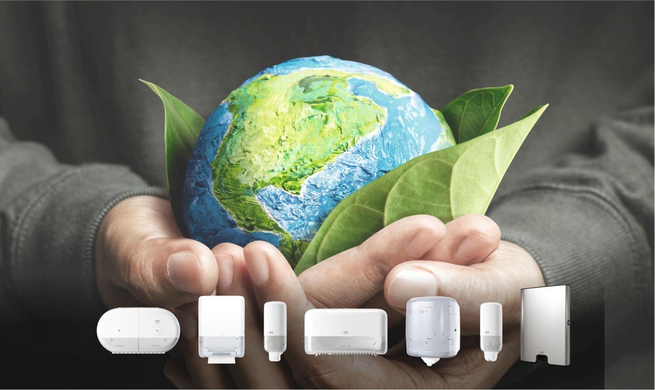 Essity heeft de CO2-uitstoot voor de 27 Tork dispensers al verminderd door gecertificeerde hernieuwbare elektriciteit te gebruiken tijdens de productie. Het gaat om zeep-, toiletpapier- en handdoekdispensers.