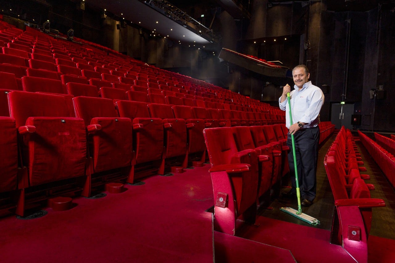 “Ik stuur ons team van vijf medewerkers aan, voer mijn eigen schoonmaakwerkzaamheden uit en ik loop openings- en sluitingsrondes. Denk daarbij aan alle deuren openzetten en de lichten aandoen. Alle ruimtes worden bijna dagelijks gebruikt en moeten wij dus ook dagelijks schoonmaken. De theaterzaal maken we na elke voorstelling schoon, maar vaak gaan we in de pauze ook naar binnen om alvast de grootste vervuiling op te ruimen.”