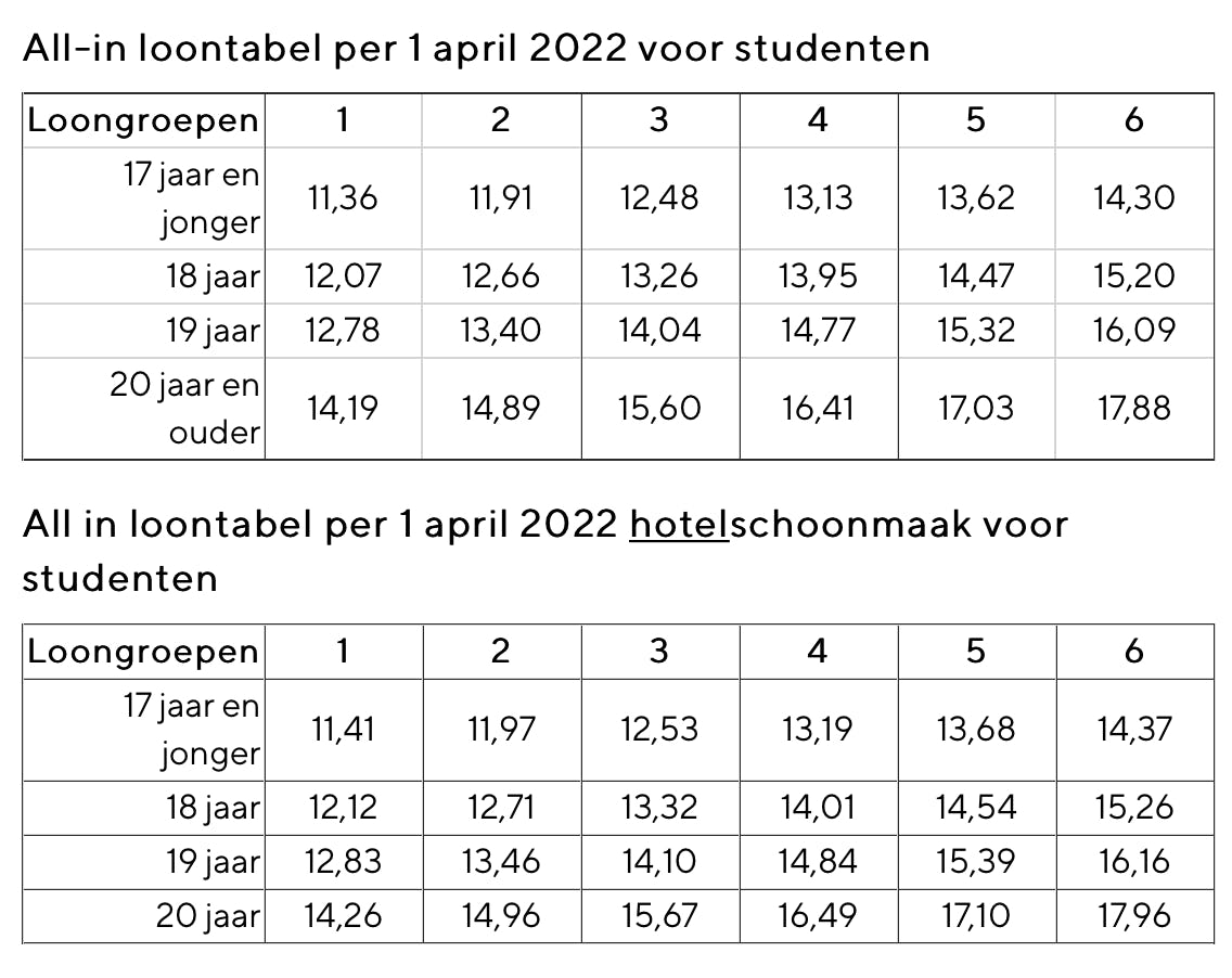 Dat zijn ten eerste de vakantiekrachten. We spreken van vakantiekrachten als een werknemer alleen werkt in de periode van medio juni tot medio september. Dat kan de hele periode zijn of een gedeelte van die periode. Gedurende het jaar mag je ook studenten en scholieren een all-in-loon betalen. In de regel zijn het dus jongeren die in aanmerking komen voor een all-in-uurloon.