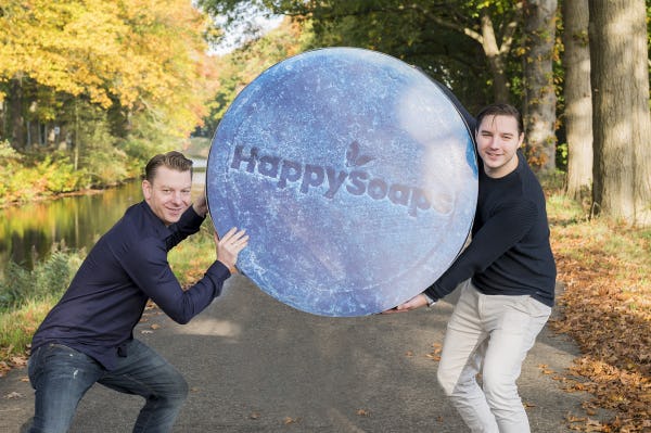 We kennen HappySoaps uit de schappen van de drogisterijen en bijna alle grote supermarkten in Nederland, maar ook daarbuiten. Het jonge bedrijf, dat in 2019 werd opgericht door Marcel en Marco Koers, maakt cosmetische producten als shampoo en body bars, tandpasta tabs, zonnebrand en zelfs hondenshampoo die allemaal 100 procent plasticvrij zijn. Dat geldt voor de gehele keten, van productie tot verzending. HappySoaps is dan ook partner van de Plastic Soup Foundation.
