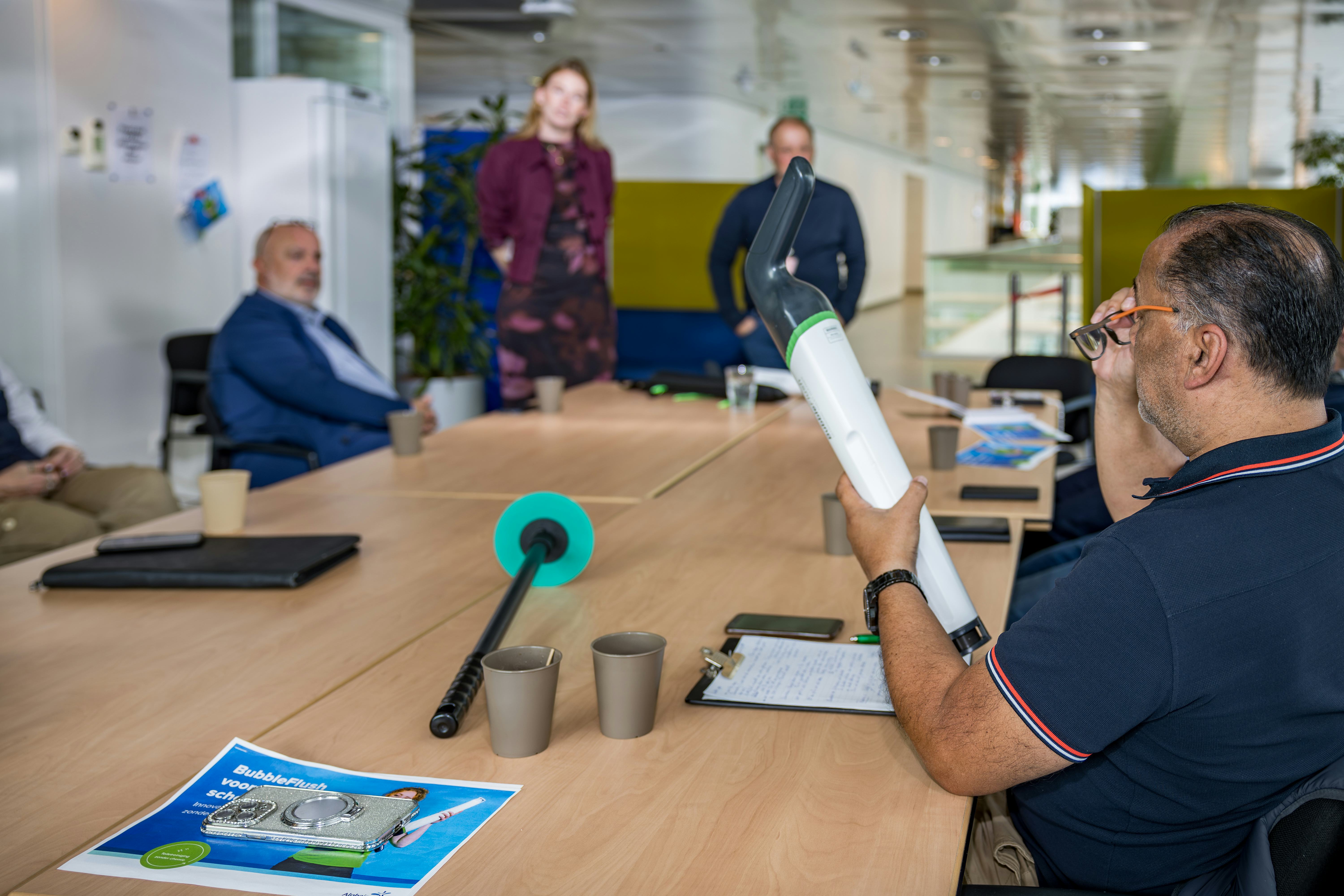 Volgens Bart van Weegberg, manager Opleidingen & Examens & Docenten bij SVS, sluit de inzet van de BubbleFlush aan bij de duurzaamheidsdoelstellingen van de RSO. Hij geeft aan: 'Ook is het beter voor het lichaam van de schoonmaakcollega’s van de RSO. Zij hoeven minder te bukken en hebben ook geen last meer van chemische middelen.'