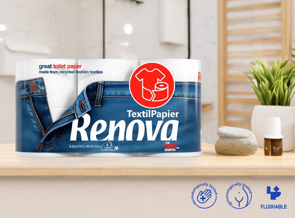 Met TextilPapier brengt Renova toiletpapier en keukenrollen op de markt die deels zijn gemaakt van gerecyclede textielvezels, zoals katoen uit afgedankte kleding, aangevuld met andere natuurlijke vezels. Daarmee geeft het bedrijf gebruikte stoffen een tweede leven in papierproducten voor dagelijks gebruik.