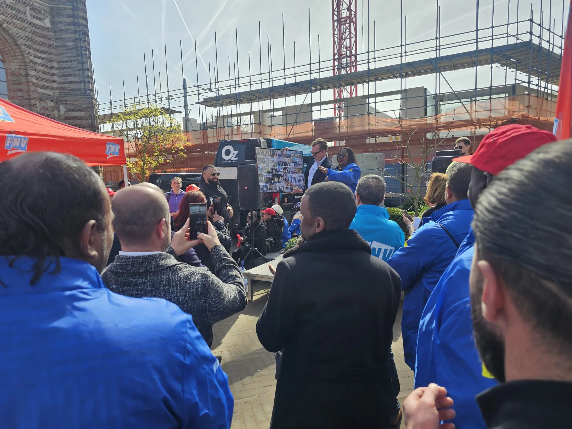 De onderhandelingen werden ook onderbroken door een actie van FNV-schoonmakers in het centrum van Sint-Michielsgestel. De werkgeversdelegatie ging langs bij de demonstratie, die door FNV werd aangekondigd als een krachtig signaal richting de cao-tafel. Op het Torenplein in Sint-Michielsgestel verzamelden zich volgens het lokale medium Gestel.nu donderdagochtend een tweehonderdtal schoonmakers en -maaksters.