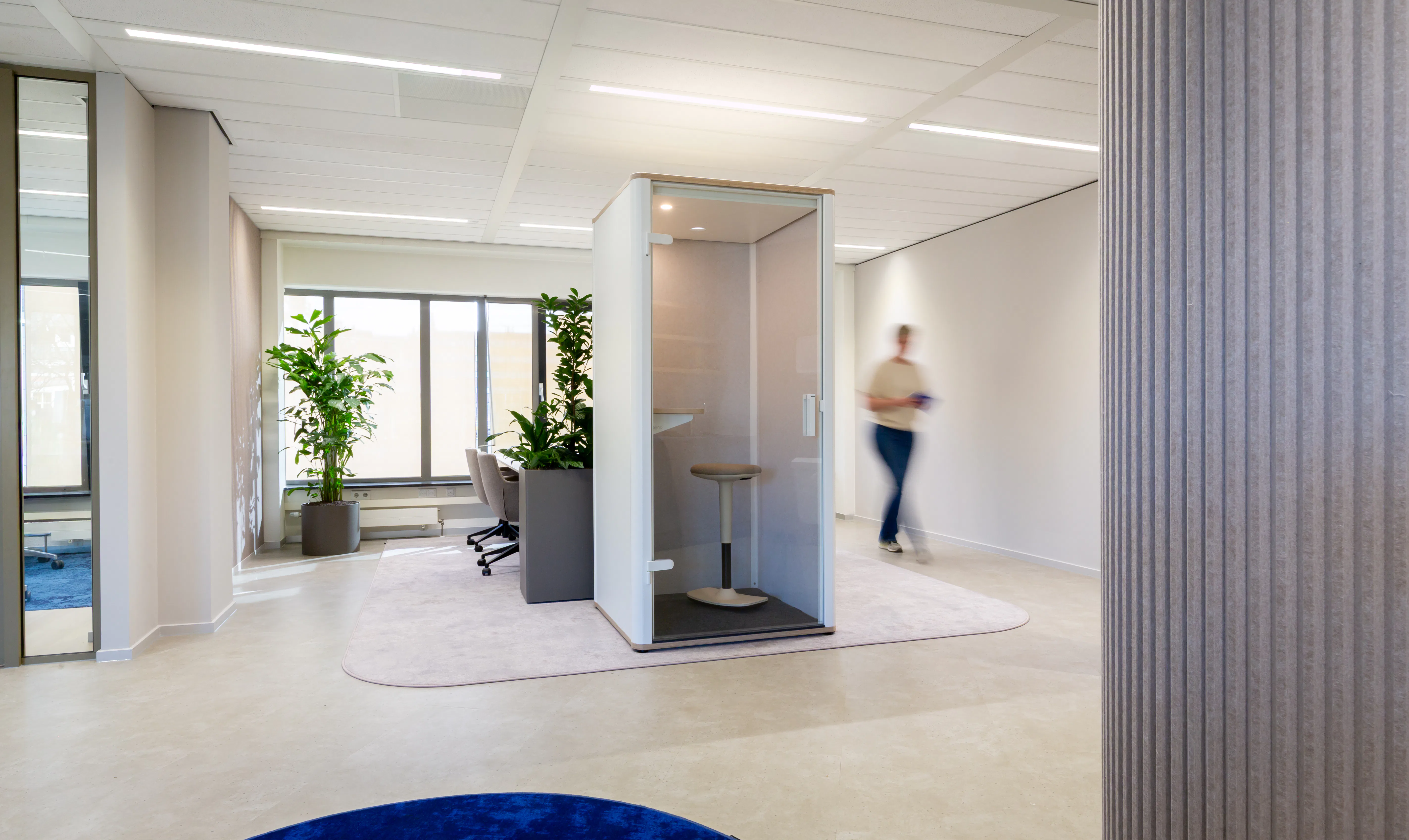 Dat vertaalt zich in minder vaste werkplekken en meer variatie in ruimtes: overlegplekken, projectruimtes, trainingsfaciliteiten en stille zones voor concentratie. De fysieke inrichting ondersteunt daarmee het gedrag dat organisaties willen stimuleren.