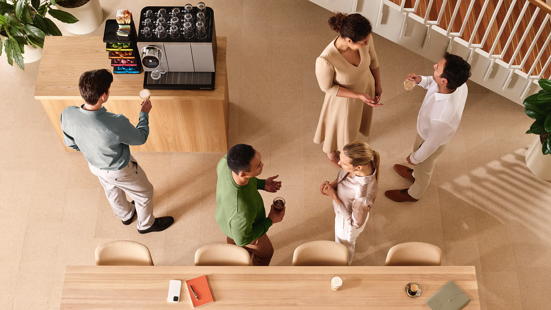 Tegelijk zit de kracht van koffie net in z’n eenvoud. 'Niemand zit te wachten op de zoveelste storing of lange wachtrijen tijdens piekmomenten. Een goed koffiemoment moet vooral vanzelf gaan. Snel, consistent en zonder nadenken. Zodat je aandacht helemaal bij je volgende taak of het gesprek met je collega blijft. De zakelijke machines van Nespresso Zakelijk zorgen ervoor dat de werkdag soepel verloopt.'
